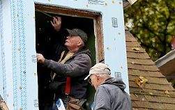 Volunteers Ted Gebeaw (bottom) and Dave Danielson work on a home for Habitat for Humanity of McHenry County. The home is expected to be completed in the spring.