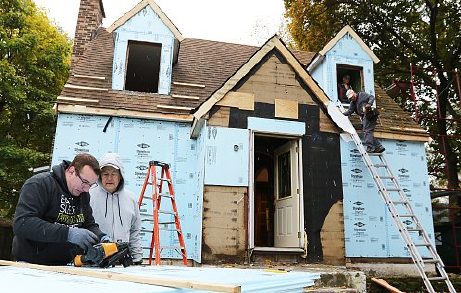 Habitat for Humanity of McHenry County Volunteers Ryan Whetham (from left) of Crystal Lake, Dave Snellman of Antioch, Dave Danielson of Harvard and Ted Gebeaw of Crystal Lake work on restoring a home Oct. 30 at 209 W. Greenwood Ave., Woodstock.